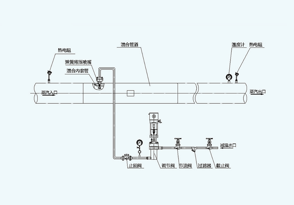 The function of the desuperheating and pressure reducing device is to reduce the pressure and cool the steam produced by the high-pressure steam/high-temperature boiler to the requirements of the factory.
